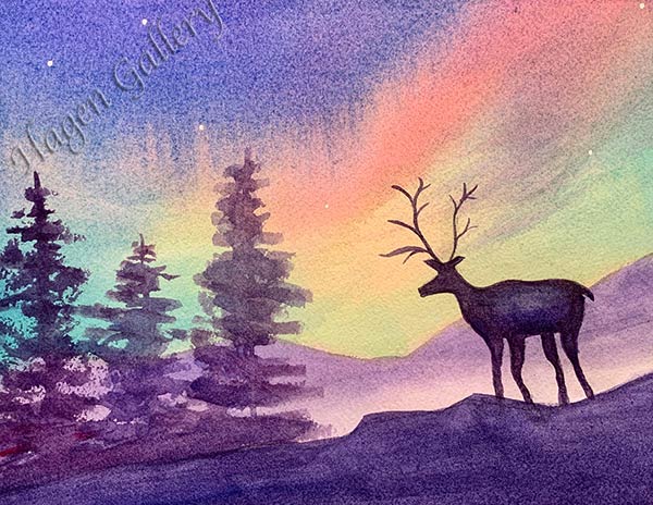 Deer at the Northern Lights